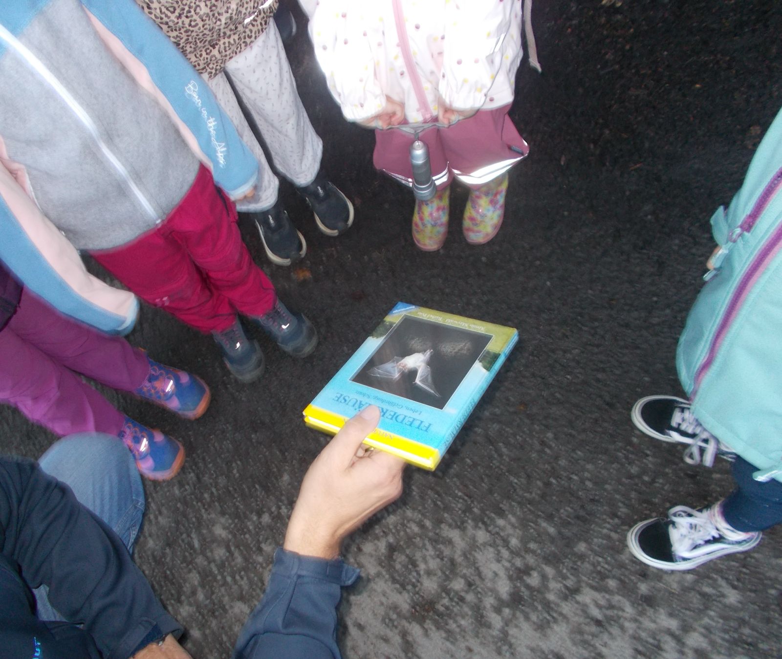 Gleich an mehreren Septemberabenden machten sich die Schulis bereit für eine Fledermauswanderung. Ausgerüstet mit einer Taschenlampe – zusammen mit Papas, Opas, Onkels und dem Dipl. Forstwirt Antonius Klein – spürten die Schulis die Fledermäuse auf.