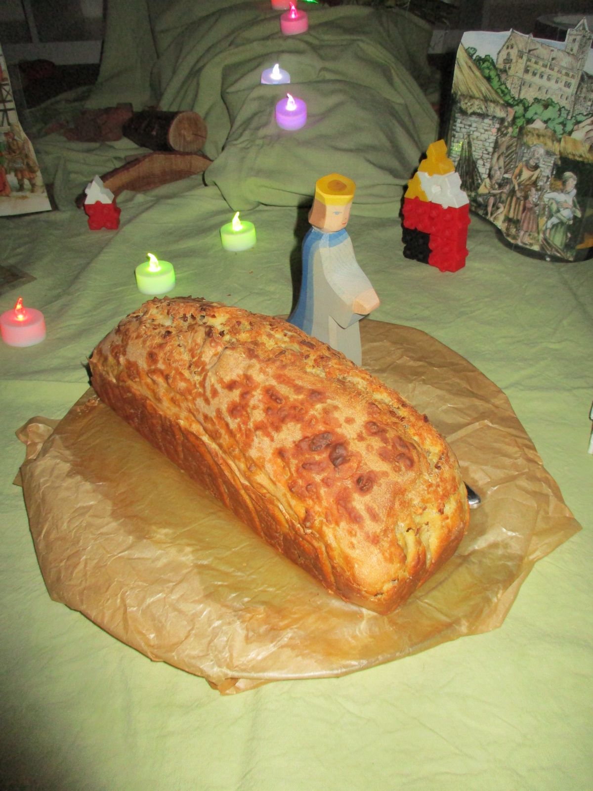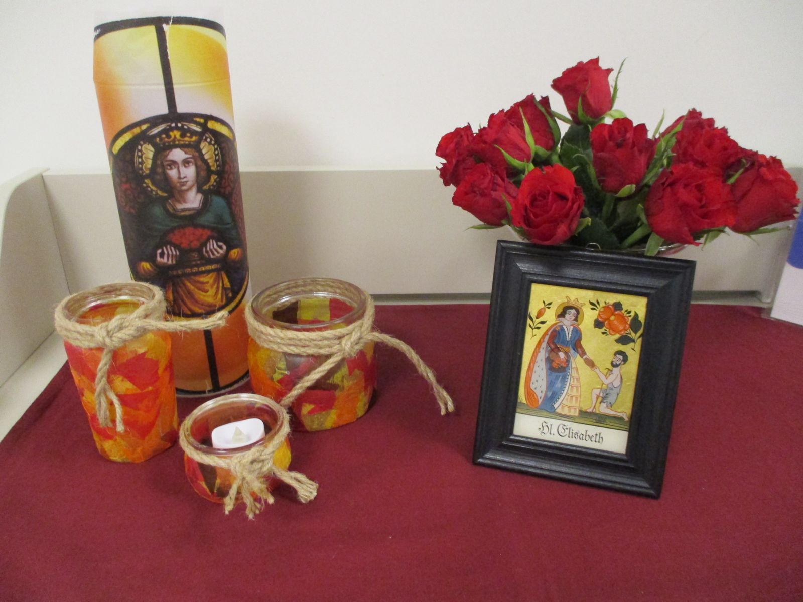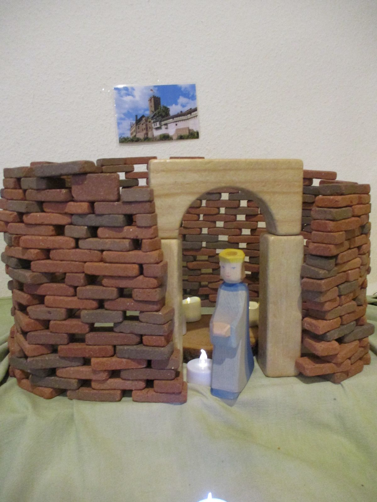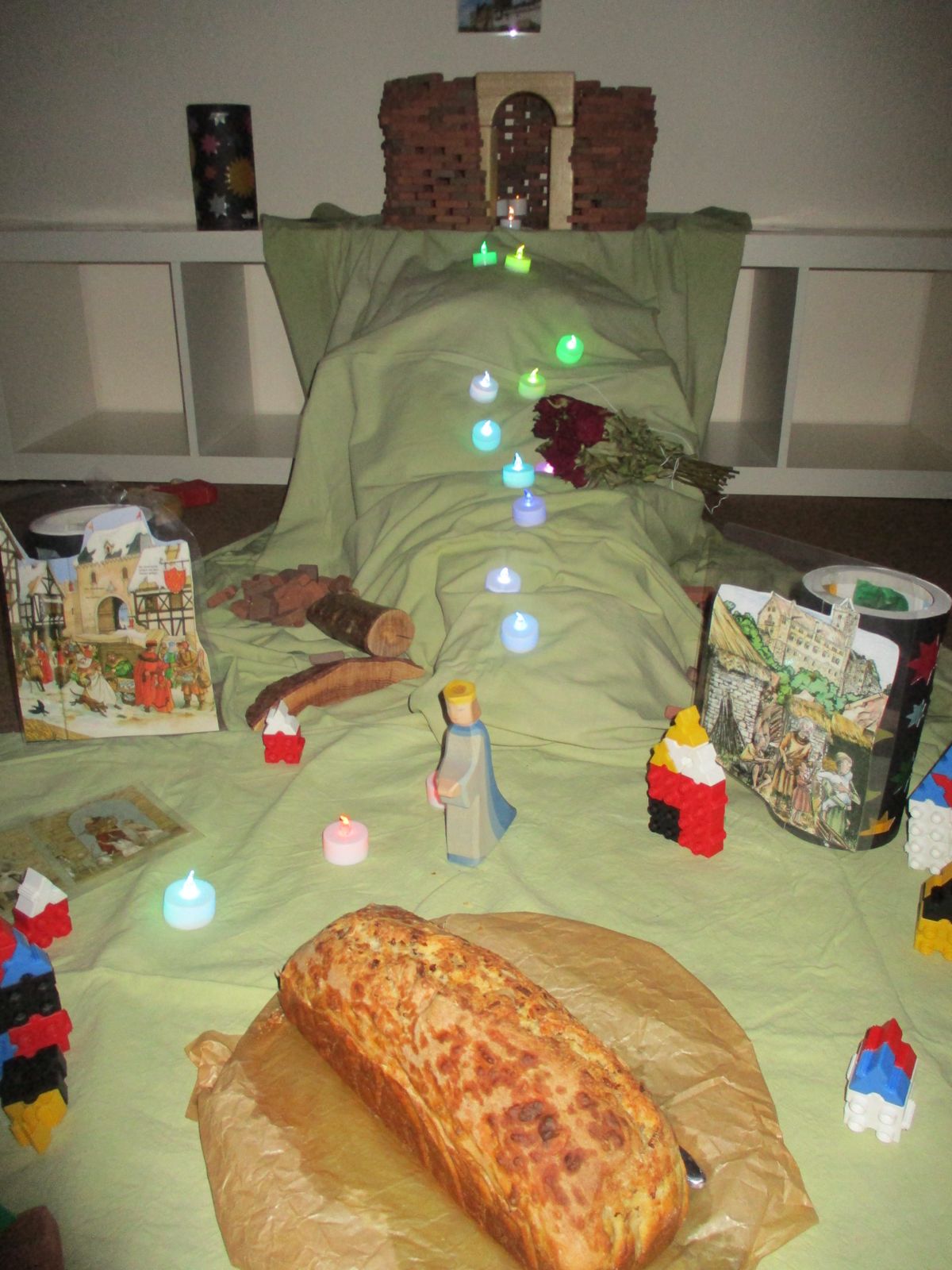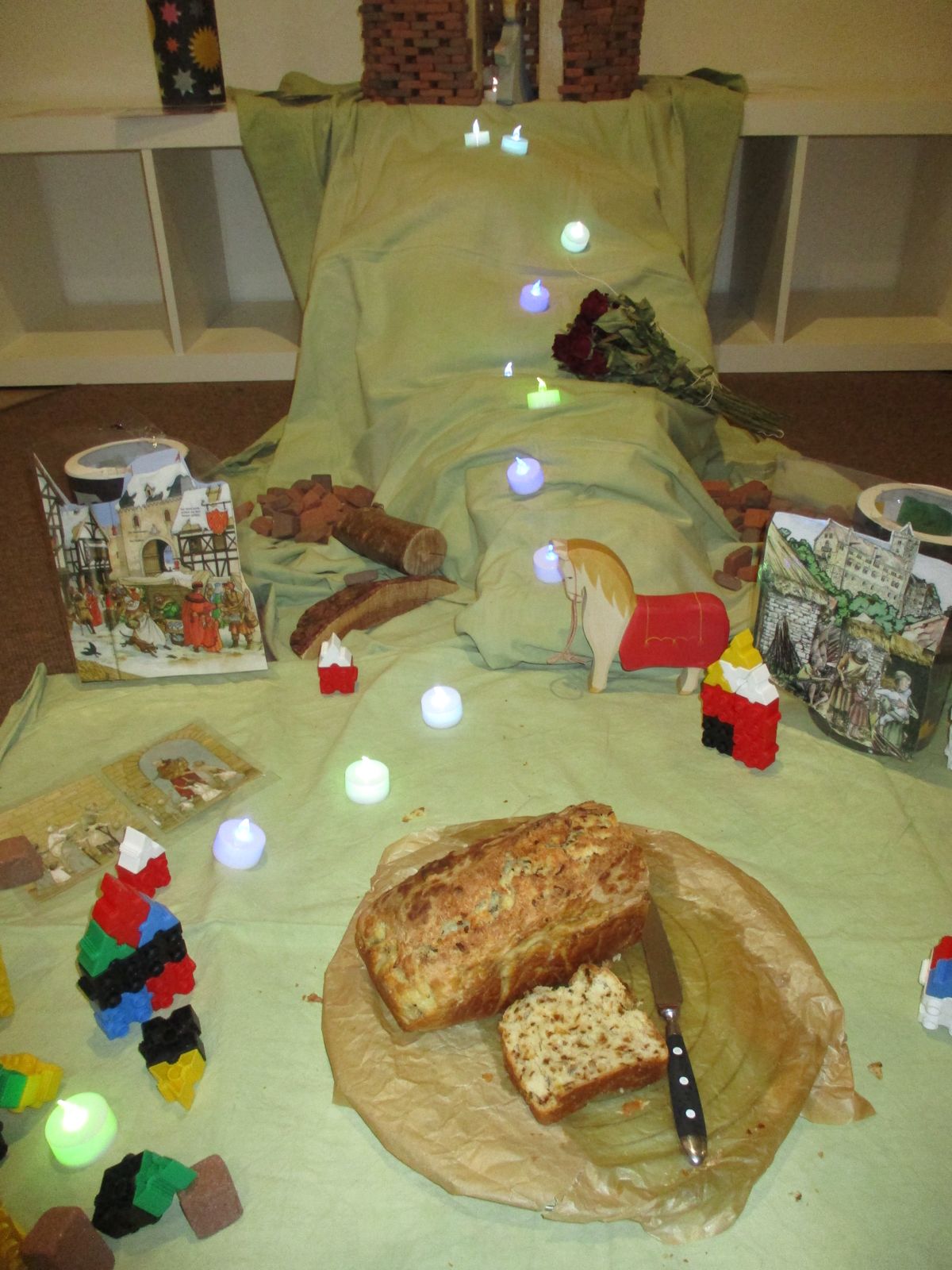 Die Kinder hörten vom Rosenwunder, sie bauten die Burg nach und spielten die Legende. Zum Abschluss teilten die Mittleren das selbstgebackene Elisabethbrot und malten farbenprächtige Elisabethbilder.