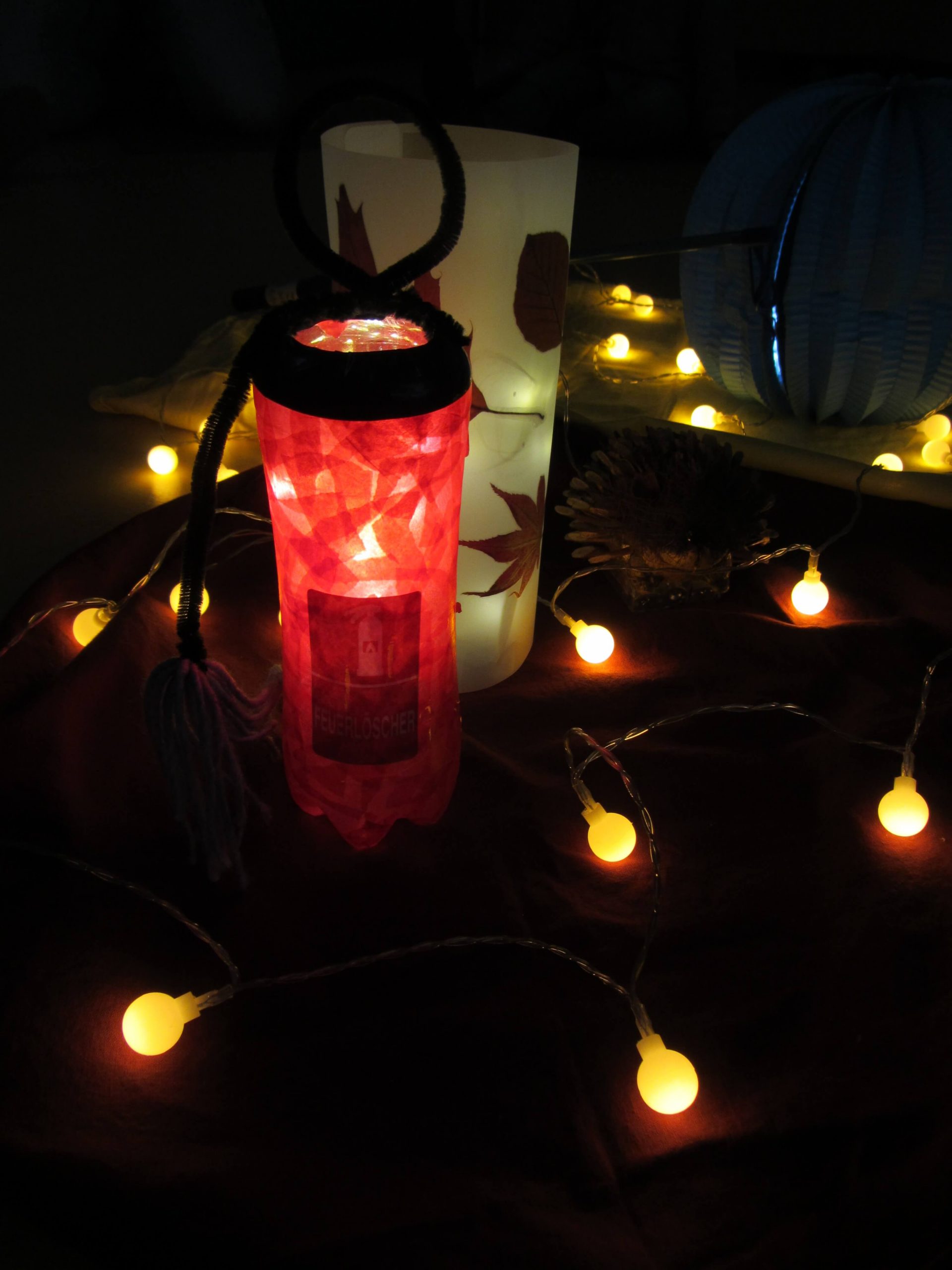 Die MINIS nahmen sich dazu Helfer in der Not aus der heutigen Zeit zum Vorbild – passend zu ihrem Projektthema: sie gestalteten knallrote, heldenhafte Feuerlöscher-Laternen, welche sie voller Stolz beim Martinszug tragen durften.