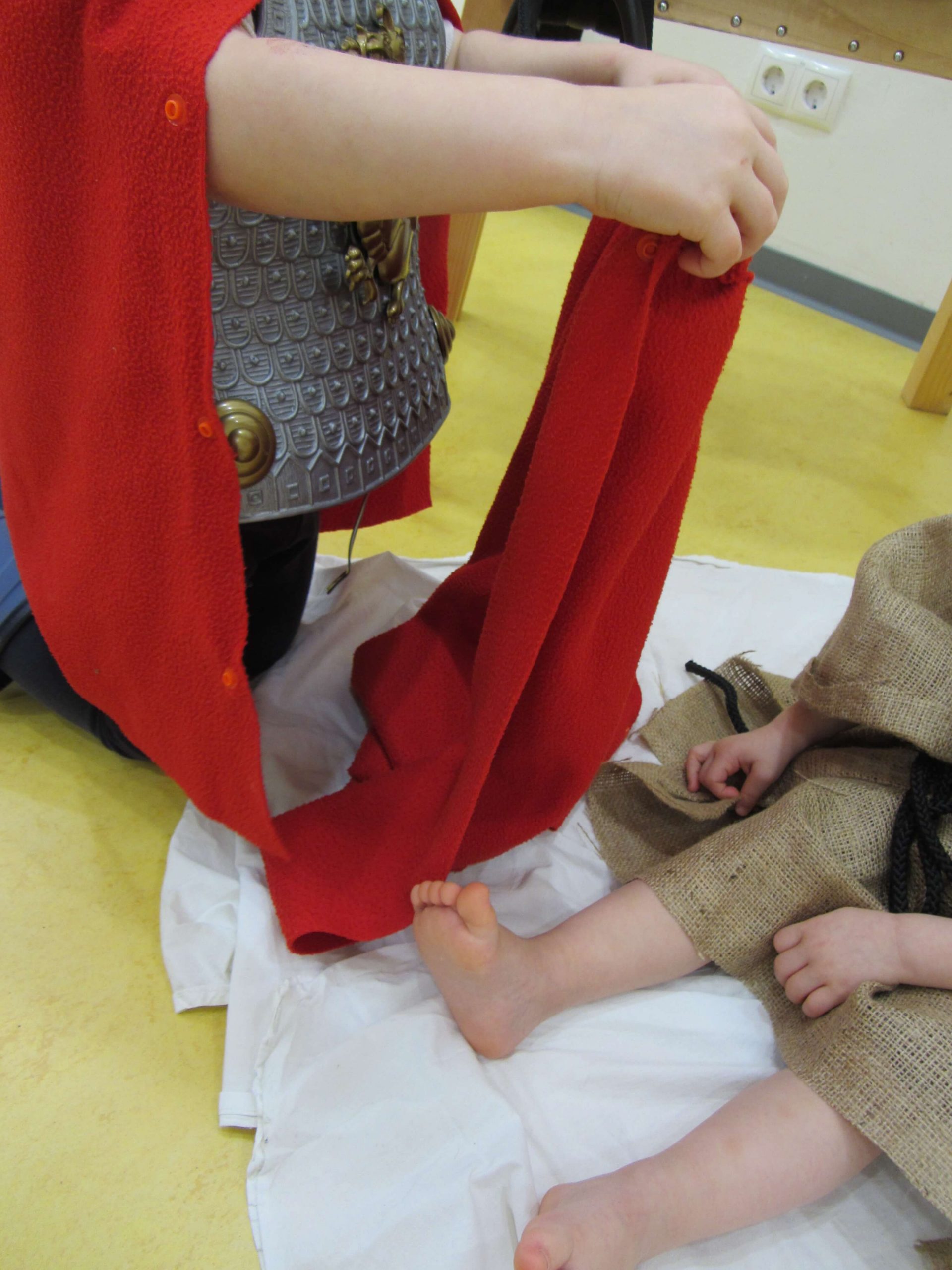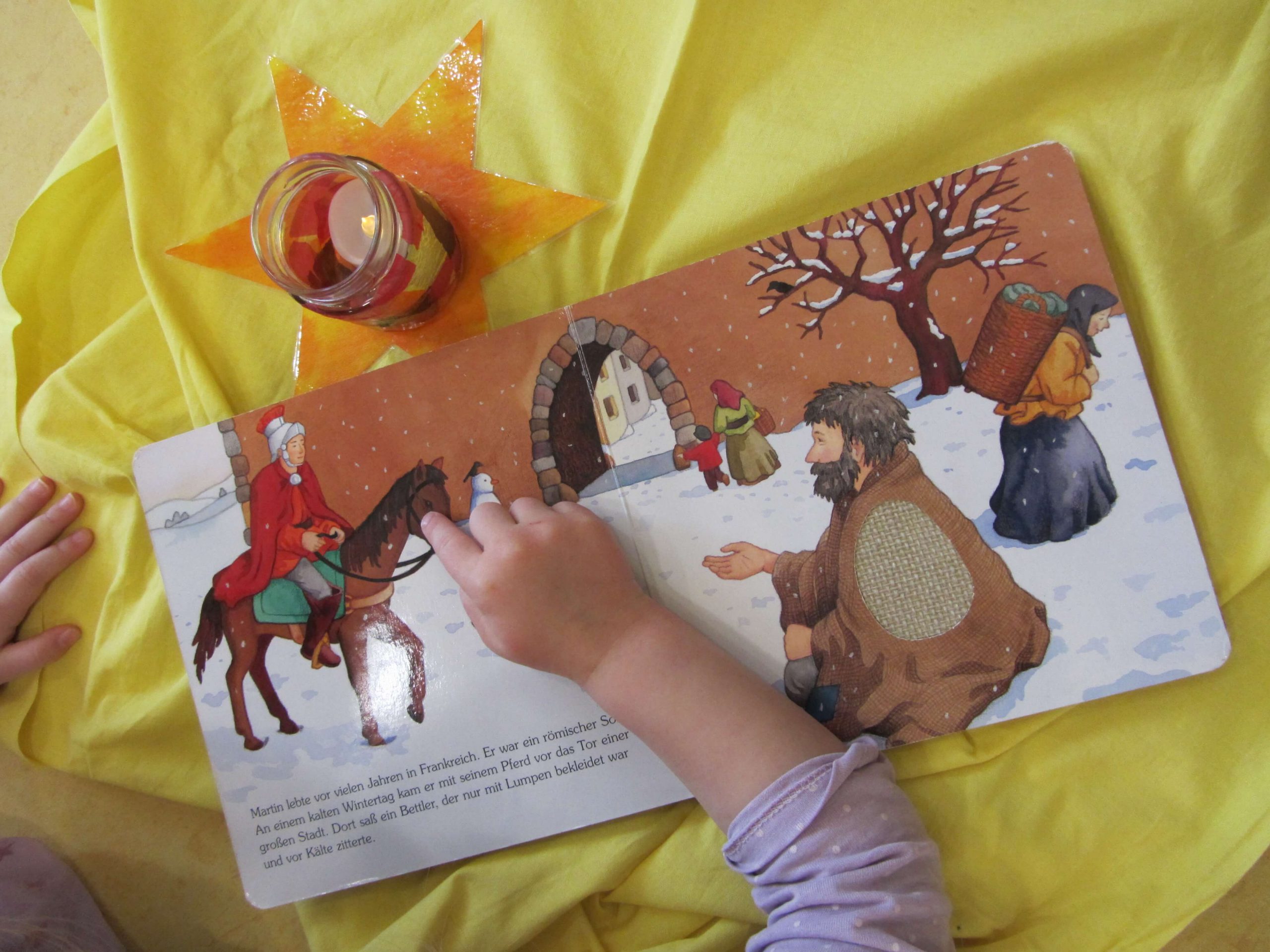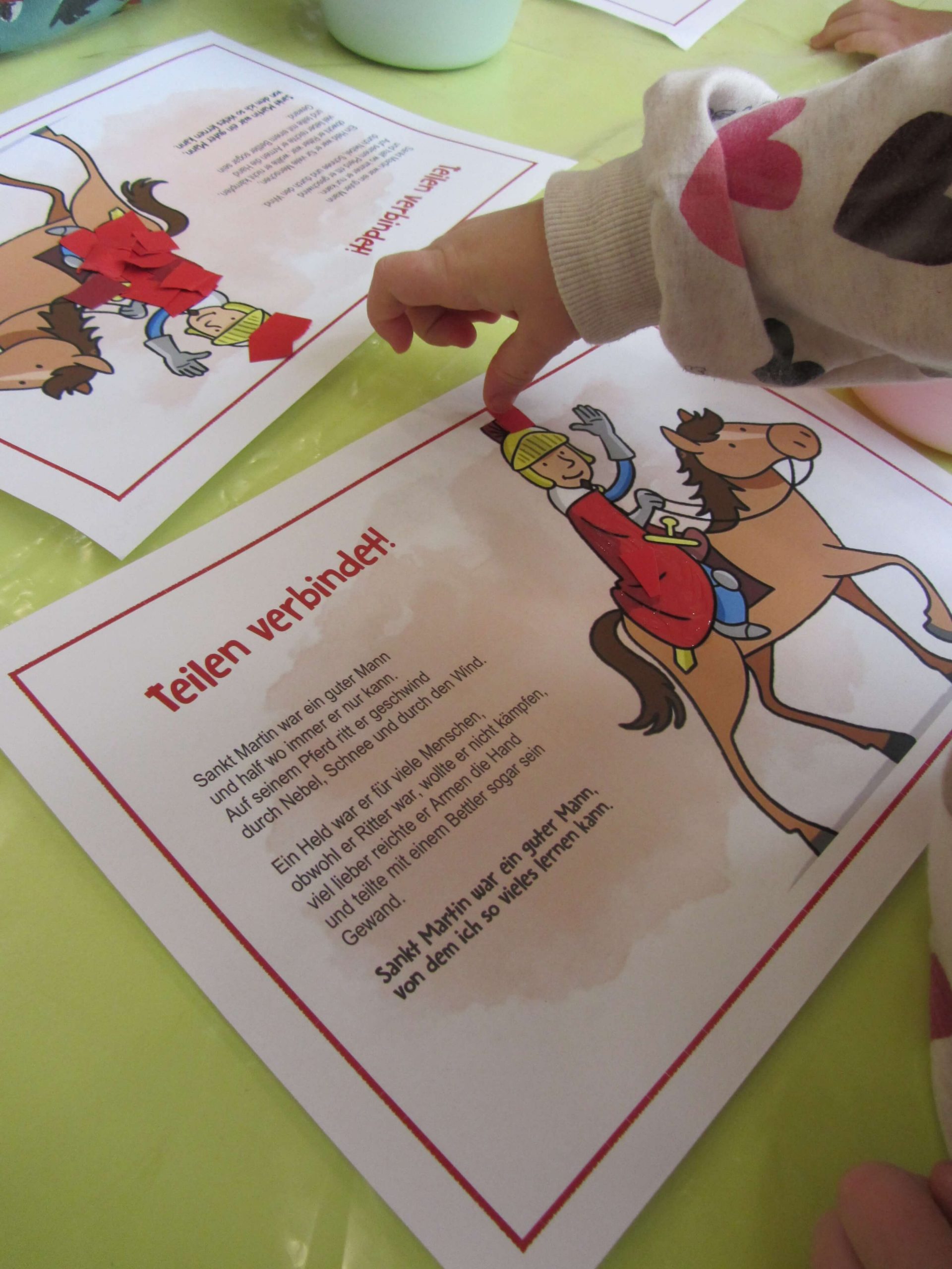 Die Legende des Heiligen Martins erlebten die Minis durch ein Bilderbuch, durch ein kleines Puppentheater und natürlich durch die Geschichte in Liedform – dabei schlüpften die Minis mit viel Freude auch selbst in die Rolle des Heiligen und des armen Mannes: